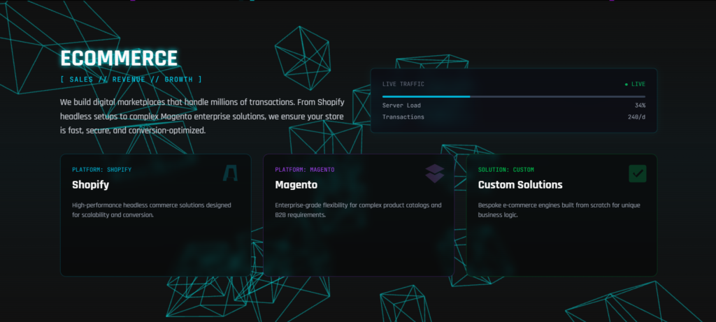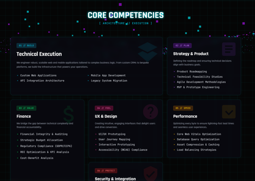 The site leverages three.js to render an animated background and Tailwind CSS to provide a responsive, clean, utility-driven layout structure. The integration between AI-generated concepts and modern frontend tooling made the development process significantly faster.